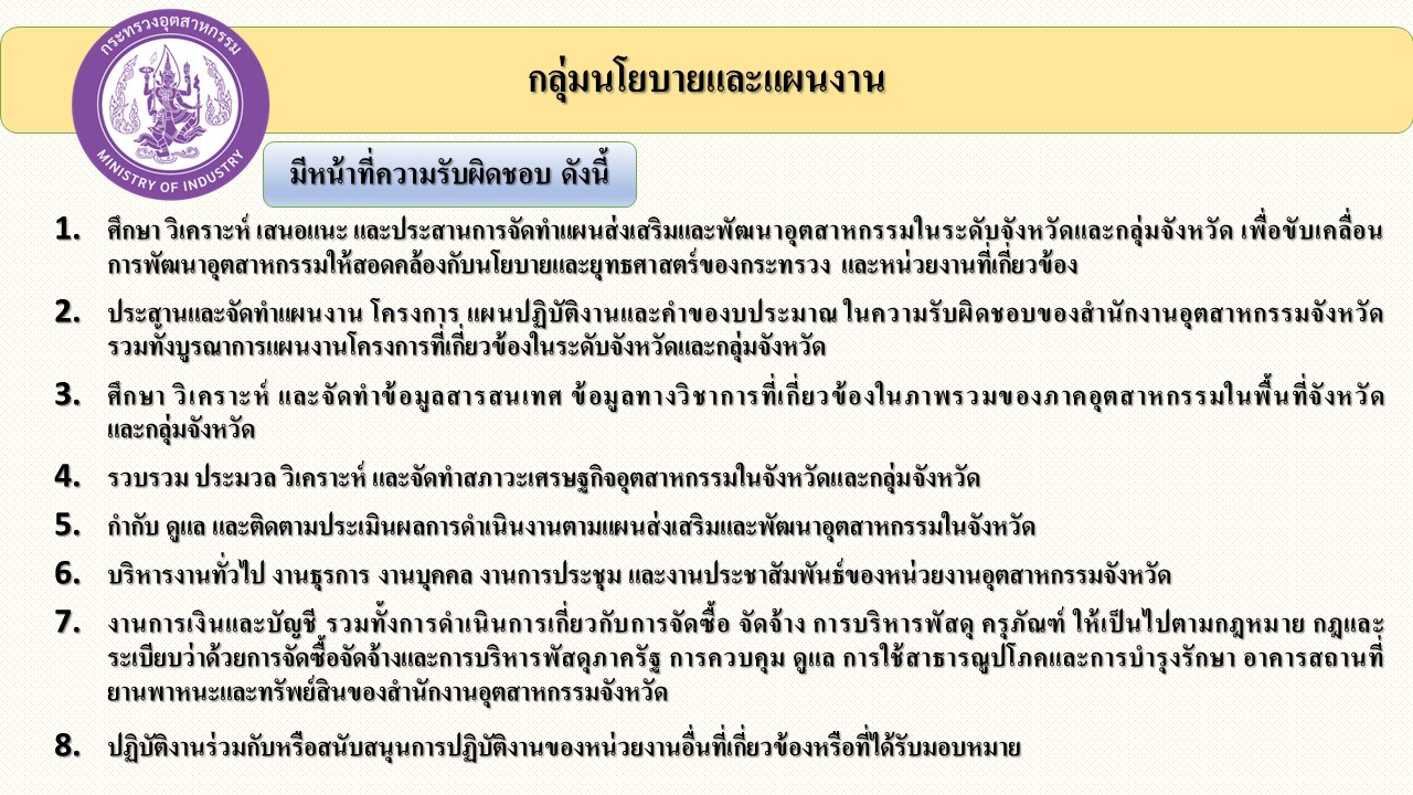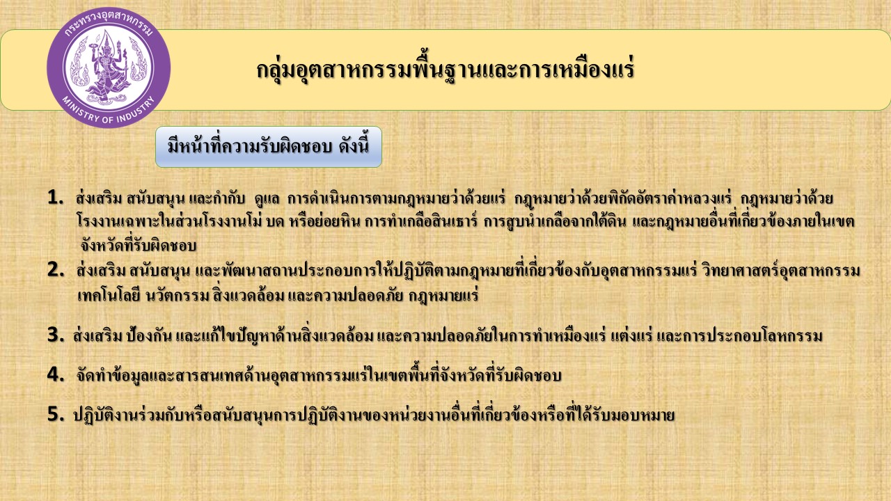 • หน่วยงานในสังกัดกระทรวงอุตสาหกรรม