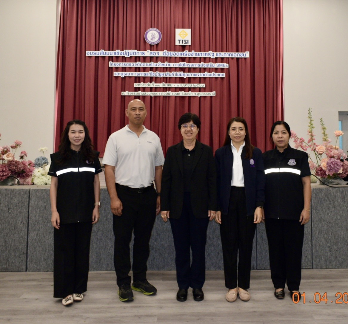 ระหว่างวันที่ 31 มีนาคม–1 เมษายน 2569 นางสาวสุเนตร เทพมังกร อุตสาหกรรมจังหวัดยโสธร พร้อมด้วยข้าราชการและเจ้าหน้าที่สำนักงานอุตสาหกรรมจังหวัดยโสธร เข้าร่วมฝึกอบรมสัมมนาเชิงปฏิบัติการ “สอจ.ต่อยอดเครือข่ายภาครัฐและเอกชน” ภายใต้โครงการตรวจติดตามร้านจำหน่าย ตามโครงการส่งเสริม SMEs และบูรณาการแก้ไขปัญหาสินค้าไม่มีคุณภาพจากต่างประเทศ ประจำปีงบประมาณ 2569 ณ โรงแรมบ้านสวนคุณตา กอล์ฟ แอนด์ รีสอร์ท อำเภอวารินชำราบ จังหวัดอุบลราชธานี โดยมี นายเอกนิติ รมยานนท์ เลขาธิการสำนักงานมาตรฐานผลิตภัณฑ์อุตสาหกรรม (สมอ.) เป็นประธานในพิธีเปิดฯ