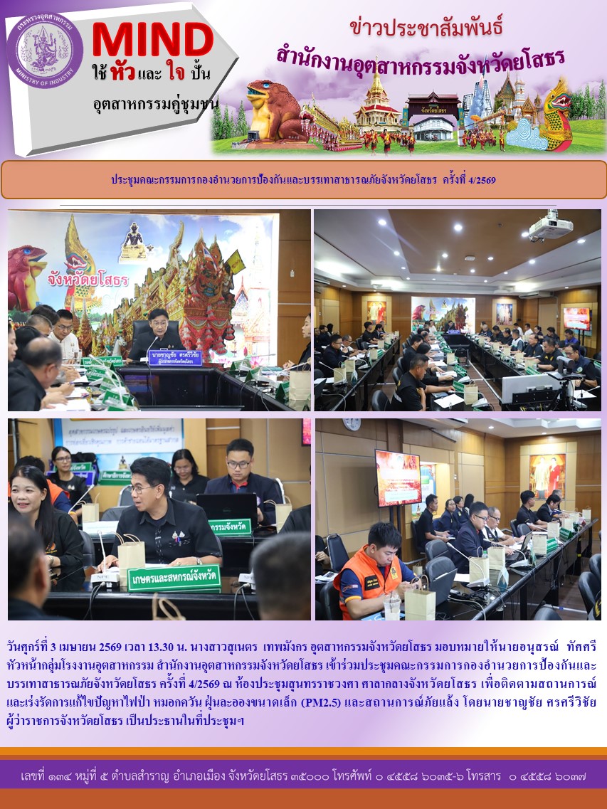 ประชุมคณะกรรมการกองอำนวยการป้องกันและบรรเทาสาธารณภัยจังหวัดยโสธร ครั้งที่ 4/2569